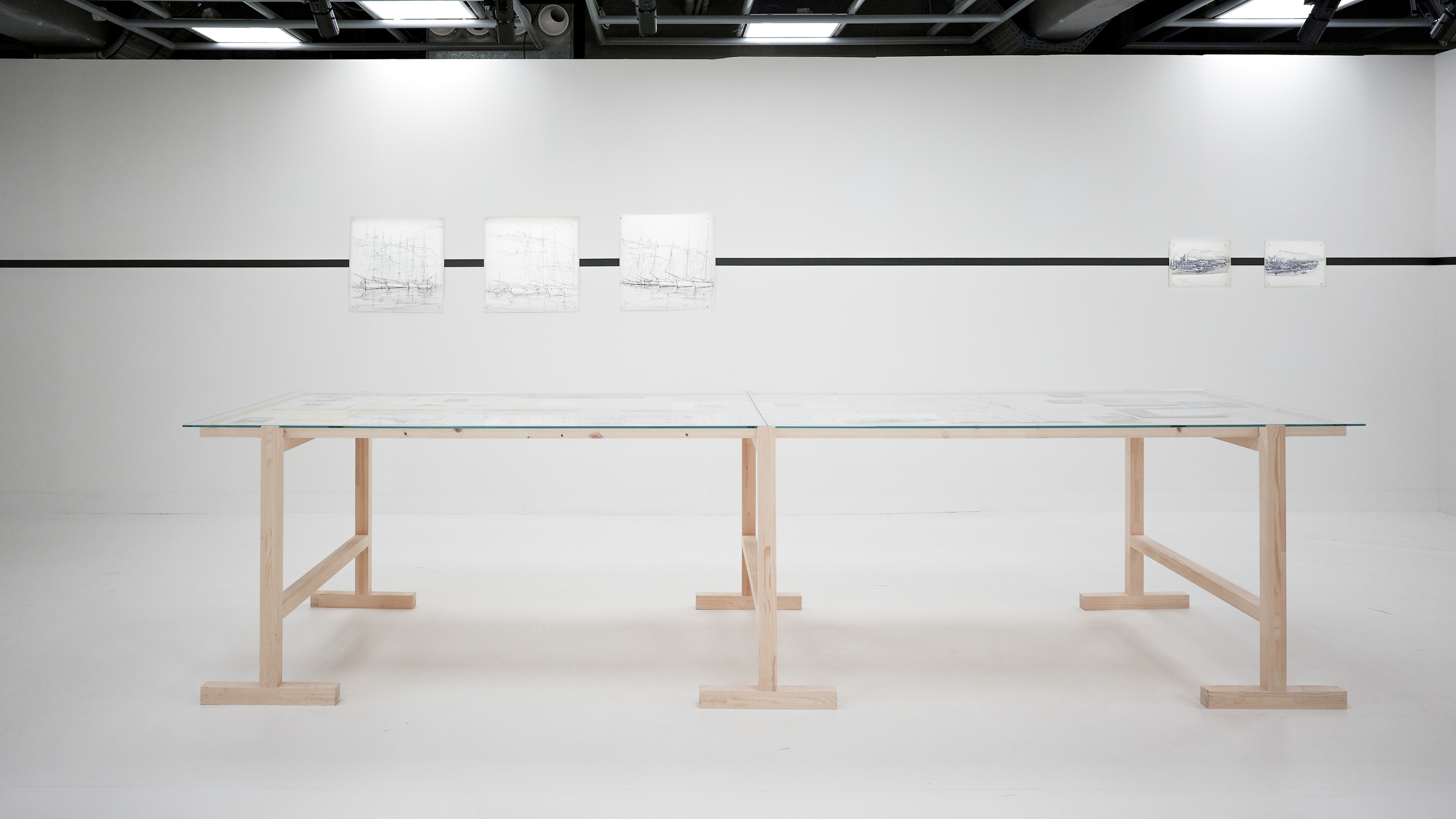 The scenography that we envision seamlessly conducts the narrative of Hubert Clerissi’s life within the space. To us, it is of big importance to sublimate the external influences on his work and how they’re intertwined with the evolution of his artistic style. We aim to produce a visual narrative that unfolds in a linear way throughout the space and connects the multiple techniques and subjects treated through his work.
